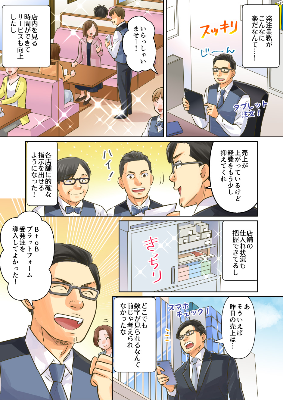 発注業務の無駄がなくなり、本来飲食店が注力すべき“おもてなし”に集中できるようになります。