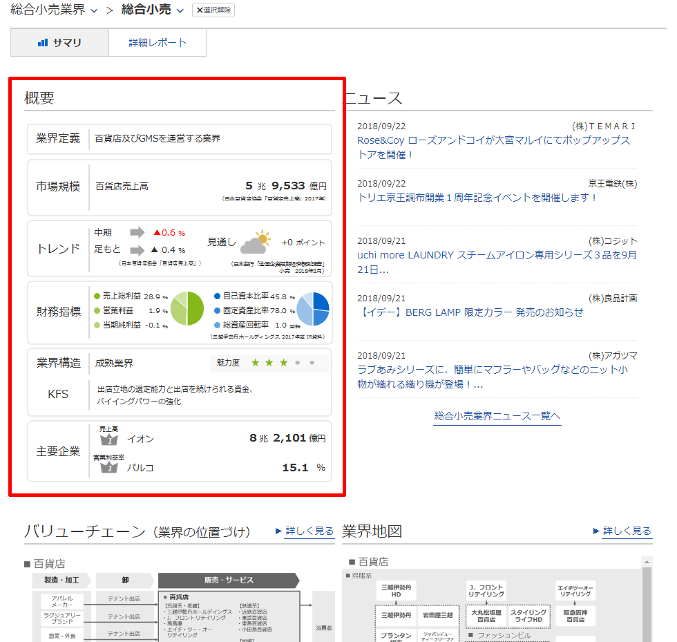 また、業界レポートサマリ冒頭では「概要」というカタチで業界情報をまとめていますが、各業界を端的に表わしたその内容から私たち運営メンバーの間では「業界ダッシュボード」と呼称しています。