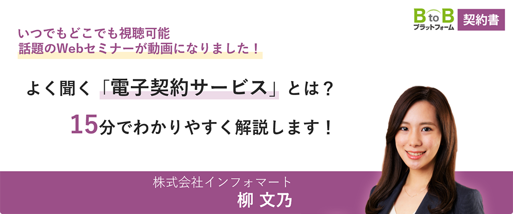 本動画では、みなさまからいただいた疑問への回答や『BtoBプラットフォーム 契約書』の特徴などを15分で簡潔にご説明。テレワークにも大活躍な電子契約サービスが短時間で学べますので是非ご視聴ください!