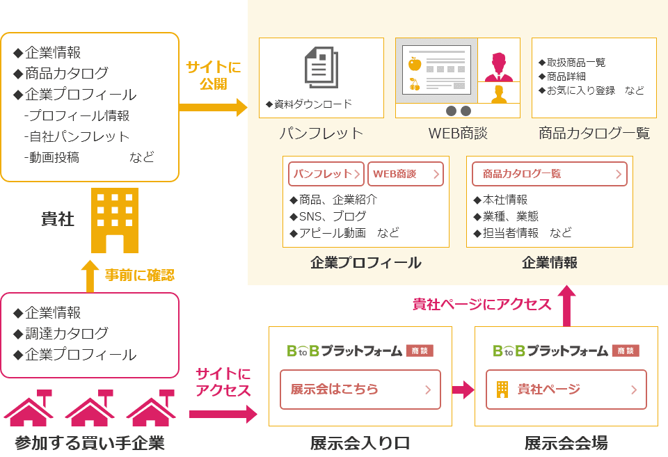 事前の準備は企業プロフィールと商品カタログのみ。高い出展料も必要なく気軽に参加が可能です。