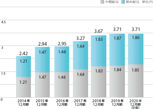 中間配当金 | 1.21円 | 1.47円 | 1.48円 | 1.64円 | 1.83円 | 1.84円 | 1.85円 |
